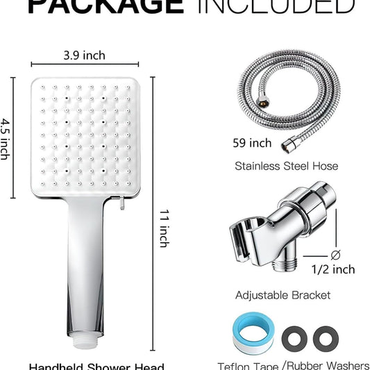 High Pressure Shower Head with Handheld 6 Settings Detachable shower head with hose Chrome