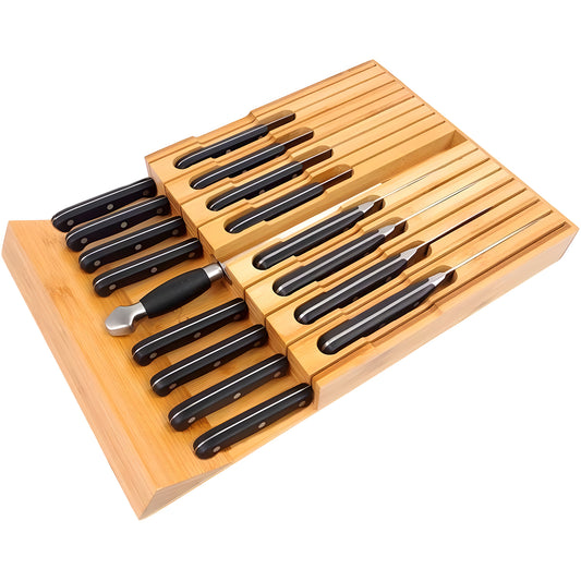 WOWMTN In-Drawer Bamboo Knife Storage with Optional Sharpener
