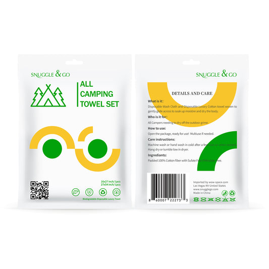 Snuggle&Go All Camping Towel Disposable Towel 100% Cotton Hyper Allergenic-Lux Soft Fabric