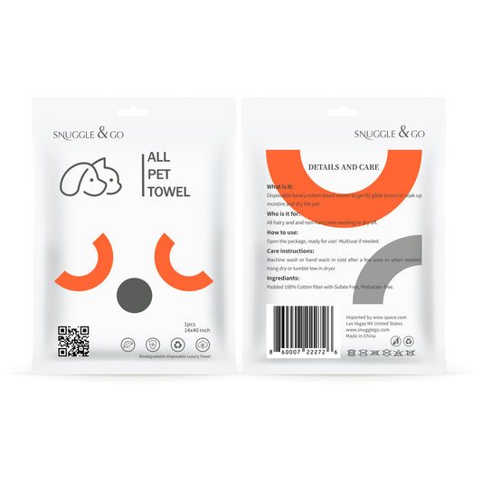 Snuggle&Go Pet Towel Disposable Towel 100% Cotton Hyper Allergenic-Lux Soft Fabric