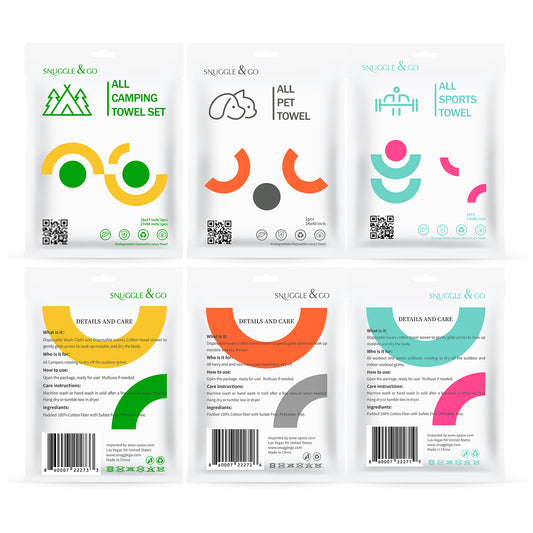 Snuggle&Go Camp&Sports&Pet Set Disposable Towel 100% Cotton Hyper Allergenic Lux Soft