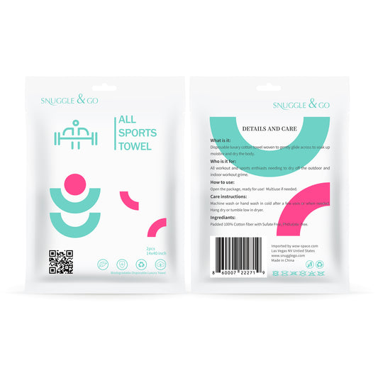 Snuggle&Go Sports Towel Disposable Towel 100% Cotton Hyper Allergenic-Lux Soft Fabric