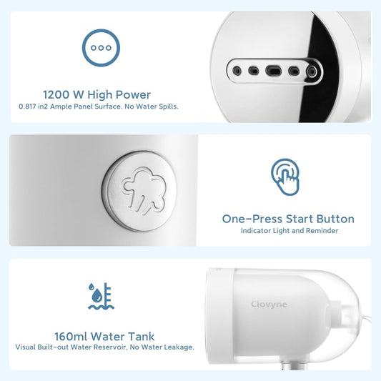 Instant Travel Steamer 1200W - 10s Heat, 160mL Tank, 266°F Wrinkle-Free
